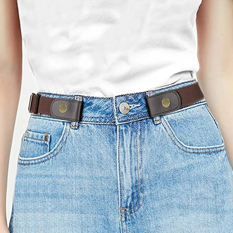 Cinto sem fivela, parece quase invisível-sem cinto de fivela, não há protuberância e nenhuma aba no cinto para jeans, o olhar de um nó de fivela de cinto sob uma camisa longa.